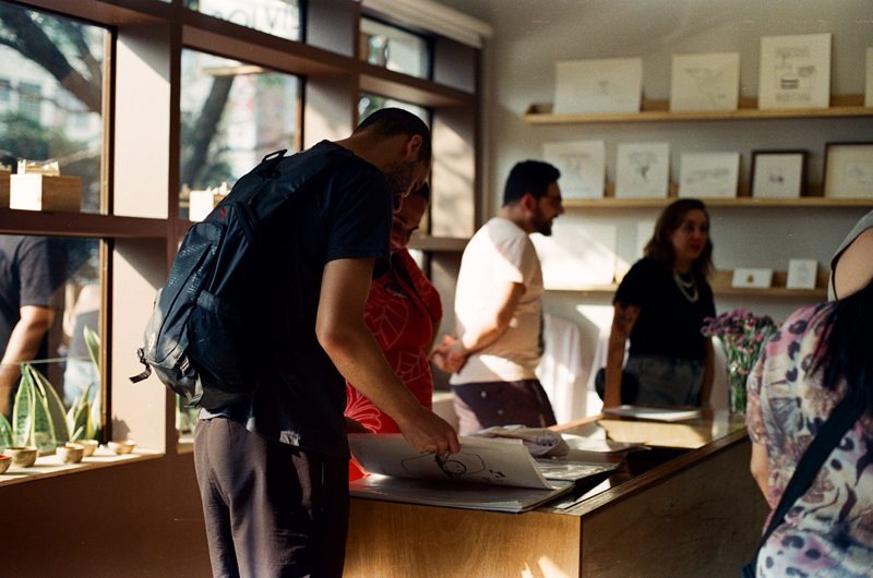 depois de quatro anos de operação no mercado novo, comercializando o trabalho de dezenas de artistas e editoras independentes, desde que nos mudamos para a galeria são vicente, em junho de 23, passamos a apresentar apenas nossa produção autoral. com isso, muitos trabalhos que chegavam a belo horizonte através da polvilho deixaram de circular na cidade, mas o desejo de continuar sendo essa ponte seguiu latente.