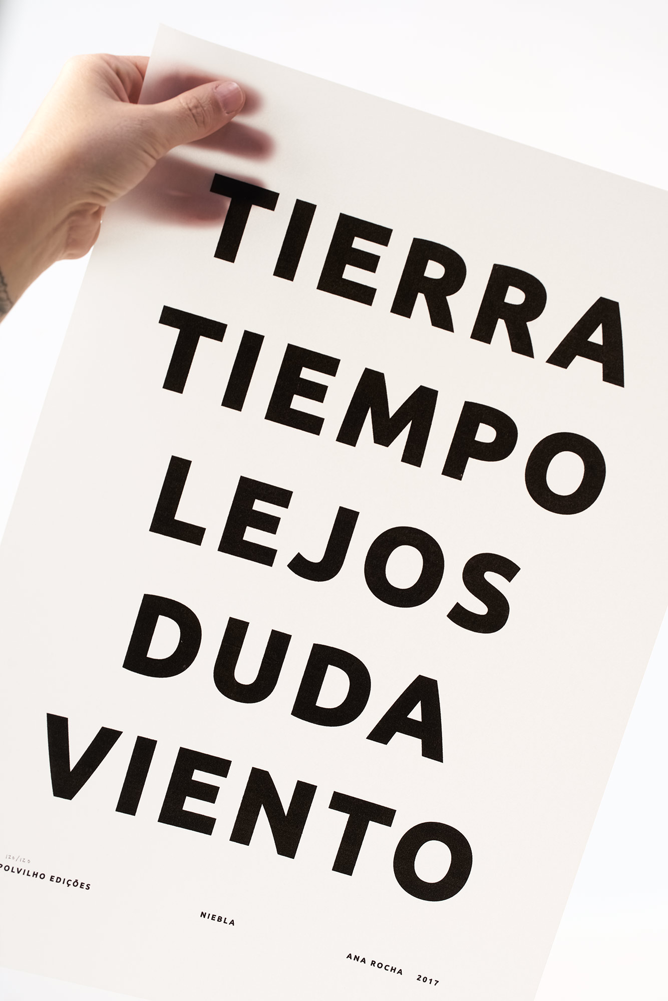 o cartaz niebla é o primeiro desdobramento do livro homônimo, da artista ana rocha. uma das poesias presentes na publicação foi rediagramada e impressa em serigrafia sobre papel vegetal.